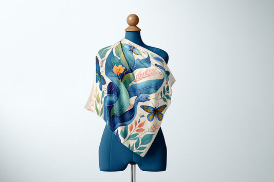 Symphonie Aquatique Hand-rolled Silk Twill Scarf