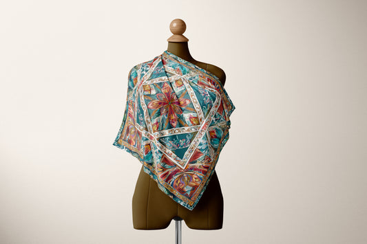 Arabesque Illusion Hand-rolled Silk Twill Scarf